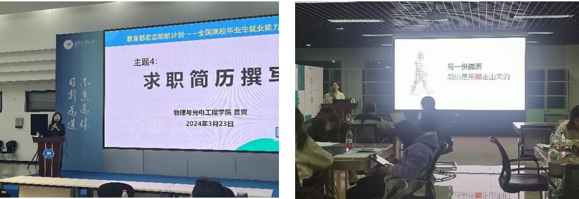 随后,“求职计划制定与自荐信撰写”由bv伟德国际1946官网晋媛媛老师与中国石油大学杨东杰老师进行详细讲解,通过利用“行动推进GREEN模型”与“求职罗盘”等实用工具帮助同学们明确求职目标,梳理求职计划,完善求职管理,细致耐心的讲解了自荐信的特征以及撰写时的注意事项。第四节课程“求职简历撰写”由中国矿业大学田甜老师和bv伟德国际1946官网贯爽老师讲授,从如何盘点自己的优势打造符合公司青睐的简历,帮助同学们梳理简历撰写经验,列举生动案例,提高同学们简历撰写能力。